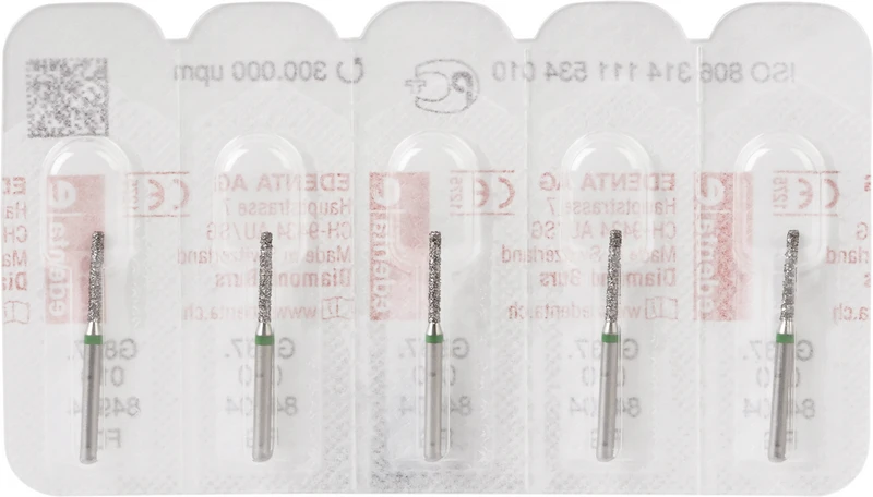 Packung 5 Diamanten grün grob, FG, Figur 111 Zylinder flach, Kopflänge: 8 mm, ISO 010