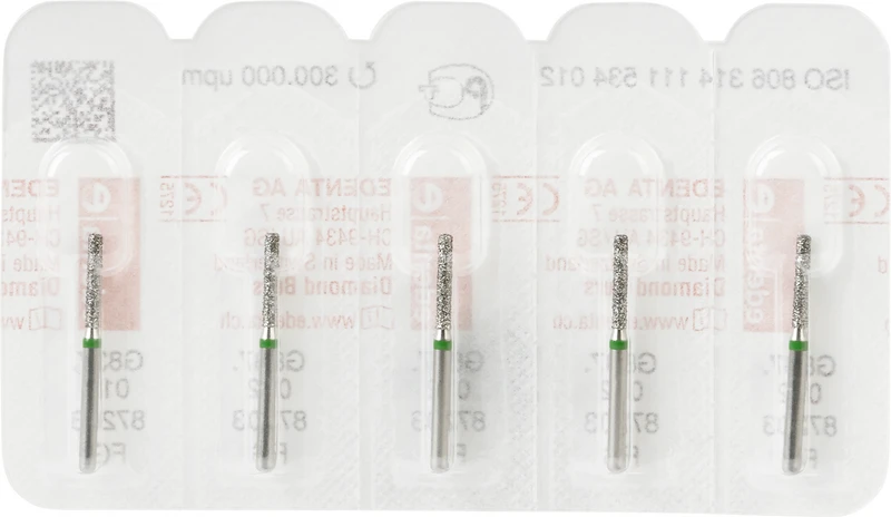 Packung 5 Diamanten grün grob, FG, Figur 111 Zylinder flach, Kopflänge: 8 mm, ISO 012