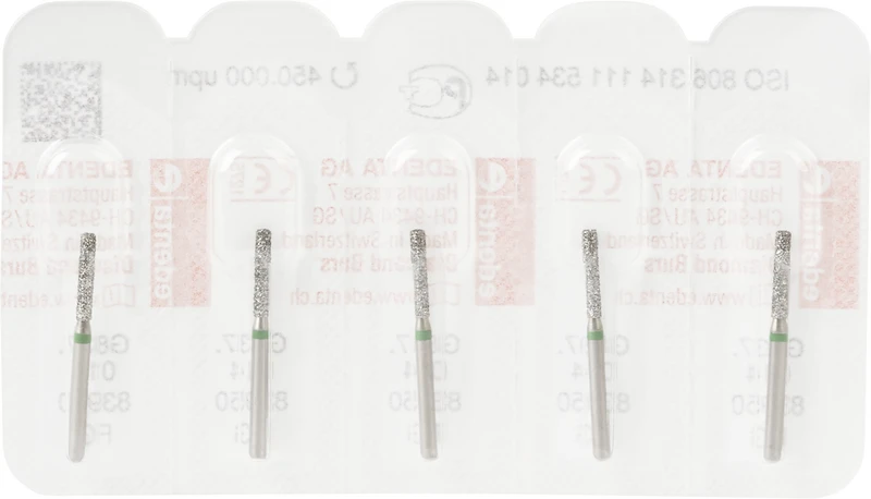 Packung 5 Diamanten grün grob, FG, Figur 111 Zylinder flach, Kopflänge: 8 mm, ISO 014