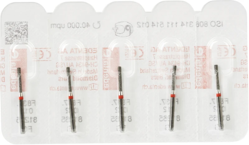 Packung 5 Diamanten rot fein, FG, Figur 111 Zylinder flach, Kopflänge: 8 mm, ISO 012