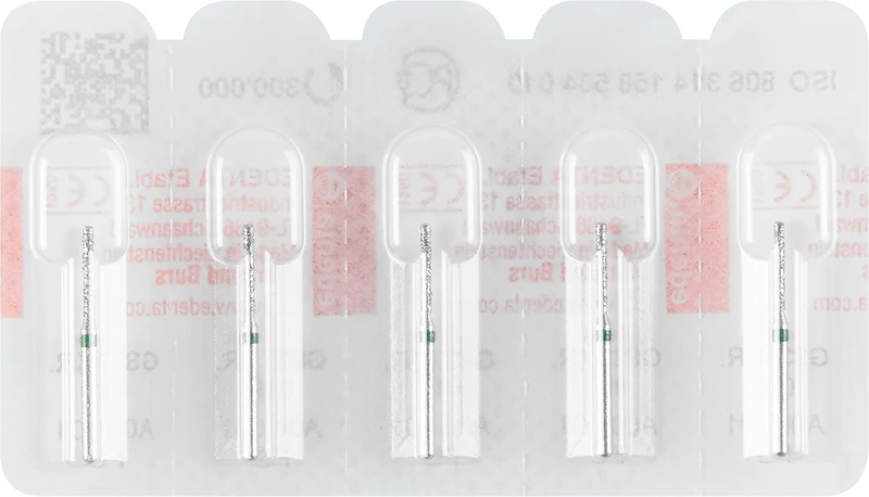 Packung 5 Diamanten grün grob, FG, Figur 158 Zylinder Kante rund, Kopflänge: 8 mm, ISO 010
