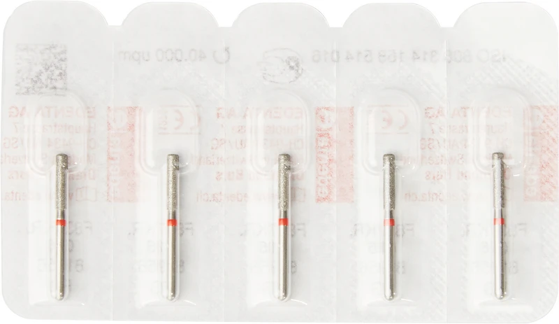 Packung 5 Diamanten rot fein, FG, Figur 158 Zylinder Kante rund, Kopflänge: 8 mm, ISO 016