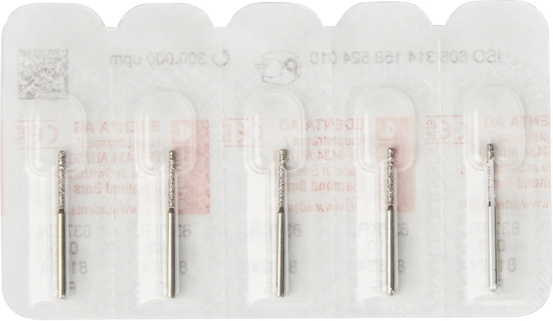 Packung 5 Diamanten Standard, FG, Figur 158 Zylinder Kante rund, Kopflänge: 8 mm, ISO 010