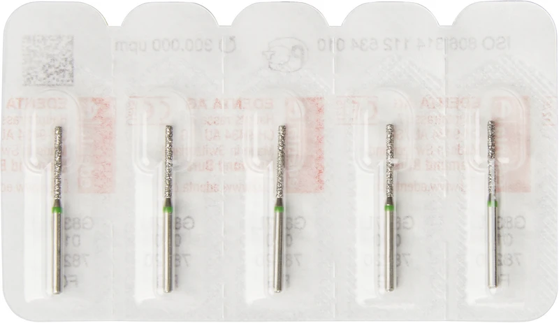 Packung 5 Diamanten grün grob, FG, Figur 112 Zylinder lang, Kopflänge: 10 mm, ISO 010