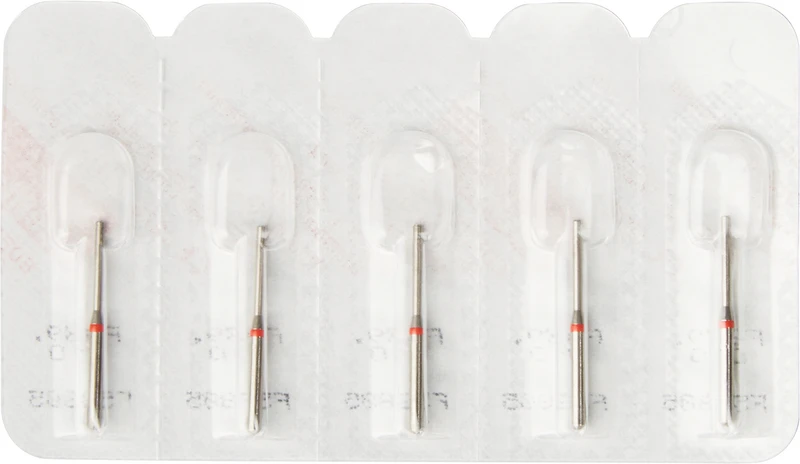 Packung 5 Diamanten rot fein, FG, Figur 150 Stirnschneidend, Kopflänge: 0,1 mm, ISO 010
