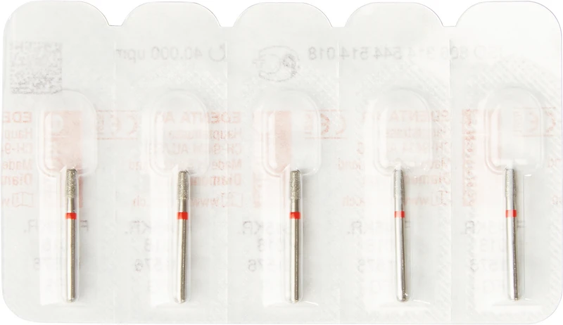 Packung 5 Diamanten rot fein, FG, Figur 544 Konus Kante rund, Kopflänge: 4 mm, ISO 018