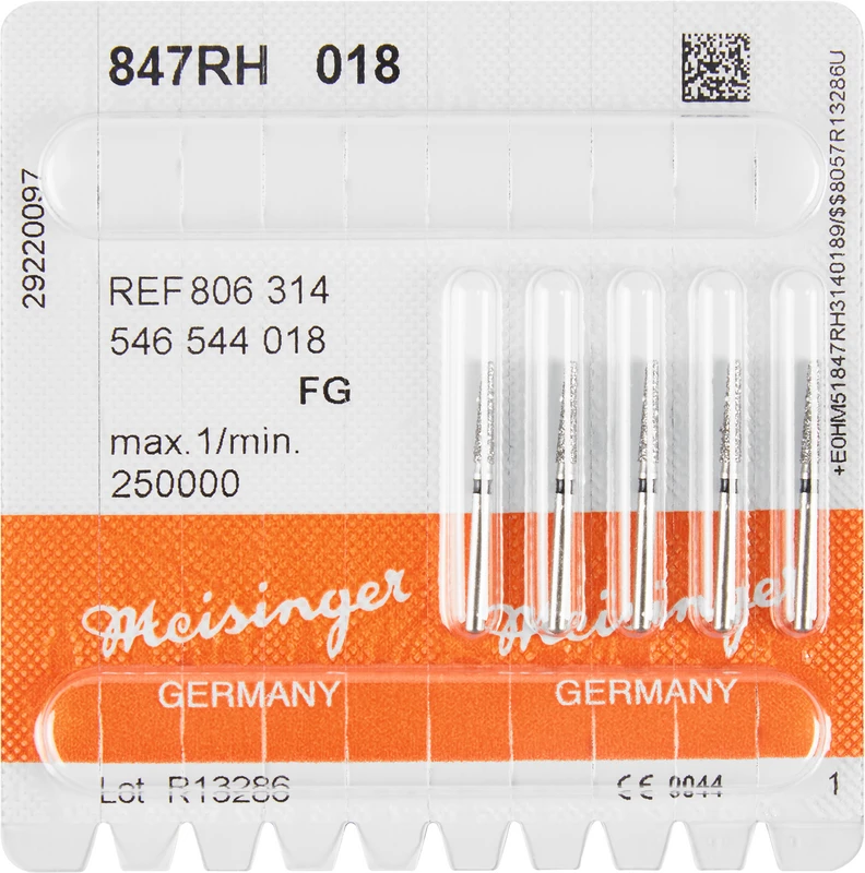 MEISINGER Diamantinstrumente bestehen im Kern aus einem Schaft und einem gehärteten, rostfreien Profilkörper, der mittels modernster Galvanotechnologie nur mit ausgewählten natürlichen Diamantkörnern belegt wird. Dies garantiert eine äußerst homogene, sichere und nachhaltige Diamantierung der Instrumente und damit optimale Arbeitsergebnisse. Diese werden außerdem durch die Auswahlmöglichkeit des Anwenders aus bis zu sieben verschiedenen Korngrößen garantiert.