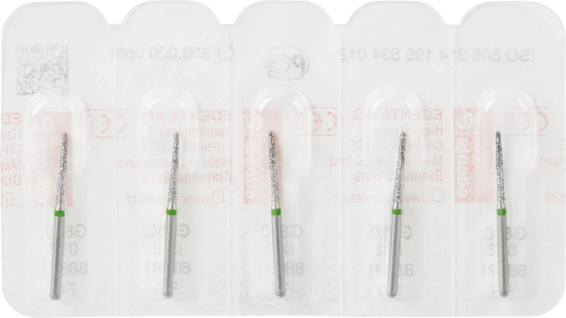 Packung 5 Diamanten grün grob, FG, Figur 199 Konus rund, Kopflänge: 10 mm, ISO 012