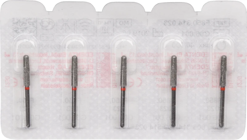 Packung 5 Diamanten rot fein, FG, Figur 199 Konus rund, Kopflänge: 10 mm, ISO 023