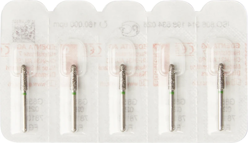 Diamanten 856 Packung 5 Stück grün grob, FG, Figur 198 Konus rund, 8 mm, ISO 025
