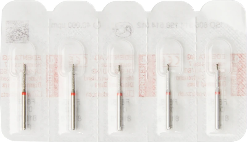 Packung 5 Diamanten rot fein, FG, Figur 198 Konus rund, Kopflänge: 8 mm, ISO 012