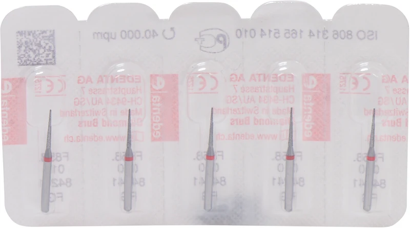 Packung 5 Diamanten rot fein, FG, Figur 165 Konus Spitze, Kopflänge: 8 mm, ISO 010