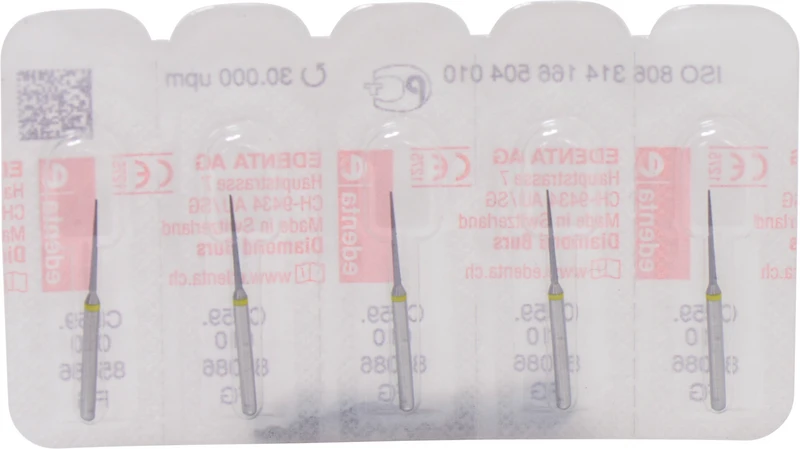 Produktinformationen "Diamanten 859 Packung 5 Stück gelb superfein, FG, Figur 166 Konus Spitze, 10 mm, ISO 010"