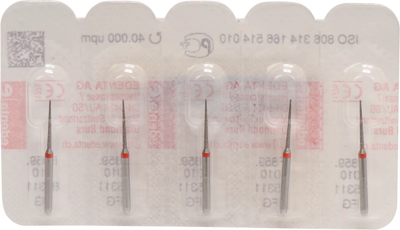 Packung 5 Diamanten rot fein, FG, Figur 166 Konus Spitze, Kopflänge: 10 mm, ISO 010