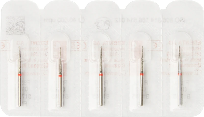 Packung 5 Diamanten rot fein, FG, Figur 166 Konus Spitze, Kopflänge: 10 mm, ISO 012