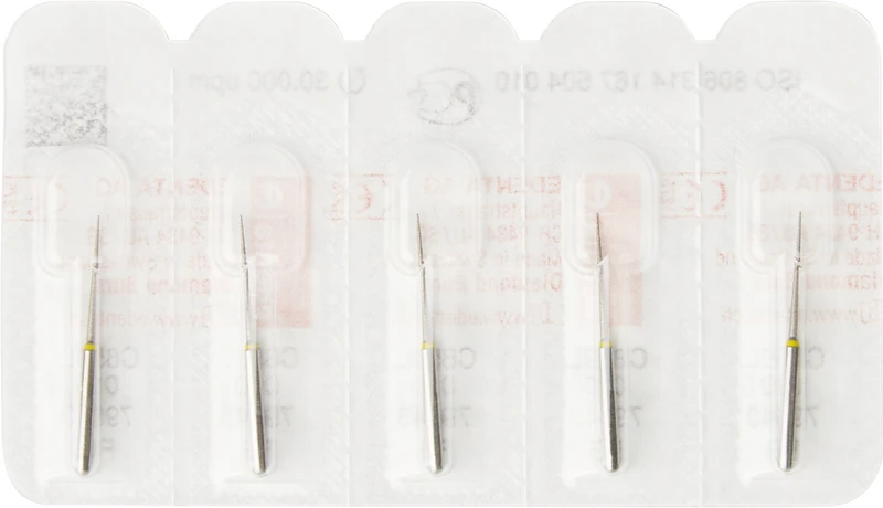 Diamanten 859L Packung 5 Stück gelb superfein, FG, Figur 167 Konus lange Spitze, 11,5 mm, ISO 010