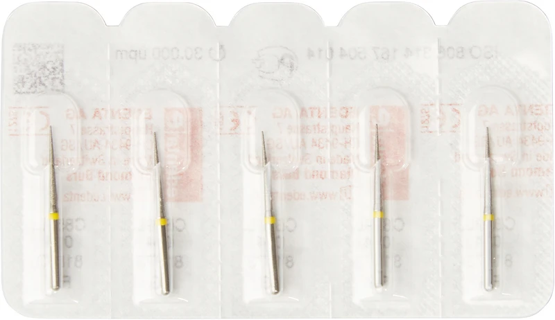 Diamanten 859L Packung 5 Stück gelb superfein, FG, Figur 167 Konus lange Spitze, 11,5 mm, ISO 014