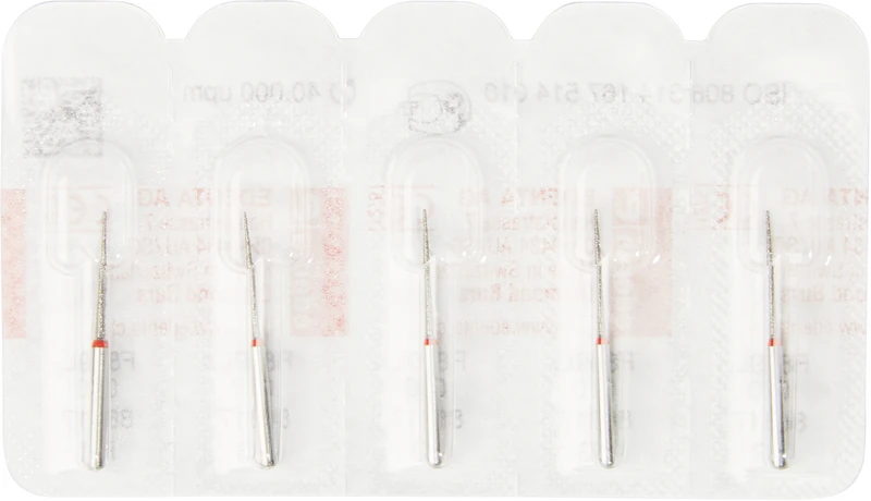 Packung 5 Diamanten rot fein, FG, Figur 167 Konus lange Spitze, Kopflänge: 11,5 mm, ISO 010