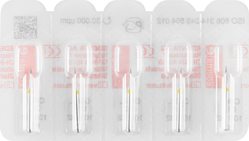 Diamanten 861 Packung 5 Stück gelb superfein, FG, Figur 248 Flamme, 6 mm, ISO 012