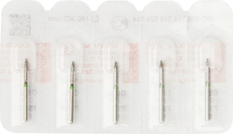 Produktinformationen "Diamanten 862 Packung 5 Stück grün grob, FG, Figur 249 Flamme, 8 mm, ISO 014"