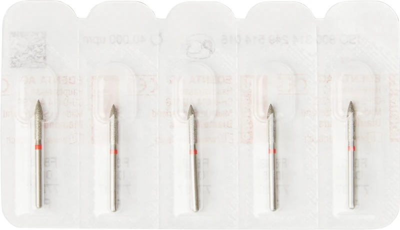 Diamanten 862 Packung 5 Stück rot fein, FG, Figur 249 Flamme, 8 mm, ISO 016