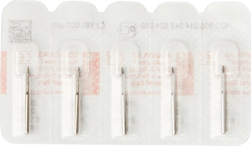 Packung 5 Diamanten Standard, FG, Figur 249 Flamme, Kopflänge: 8 mm, ISO 010