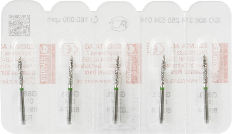 Produktinformationen "Diamanten 863 Packung 5 Stück grün grob, FG, Figur 250 Flamme, 10 mm, ISO 014"