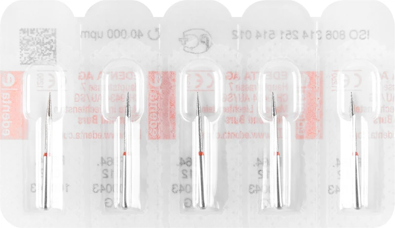 Diamanten 864 Packung 5 Stück rot fein, FG, Figur 251 Flamme, 12 mm, ISO 012