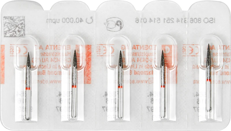 Produktinformationen "Diamanten 864 Packung 5 Stück rot fein, FG, Figur 251 Flamme, 12 mm, ISO 016"