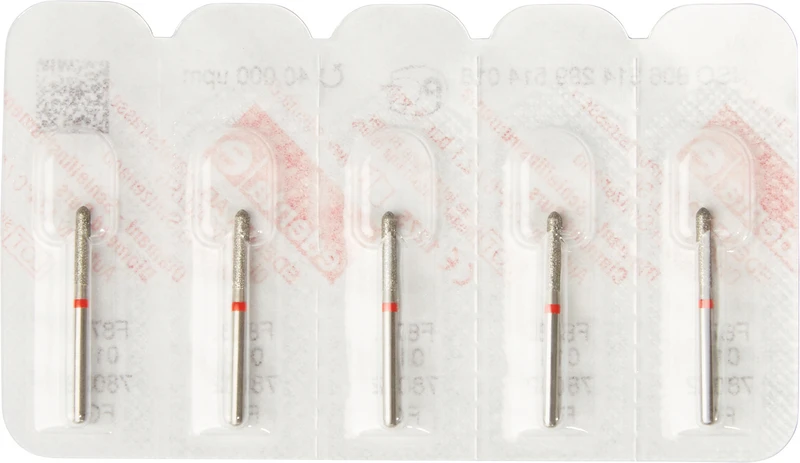 Packung 5 Diamanten rot fein, FG, Figur 289 Torpedo zylindrisch, Kopflänge: 8 mm, ISO 016