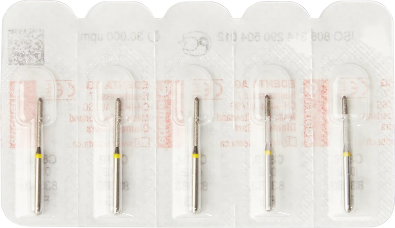 Packung 5 Diamanten gelb superfein, FG, Figur 290 Torpedo zylindrisch, Kopflänge: 10 mm, ISO 012