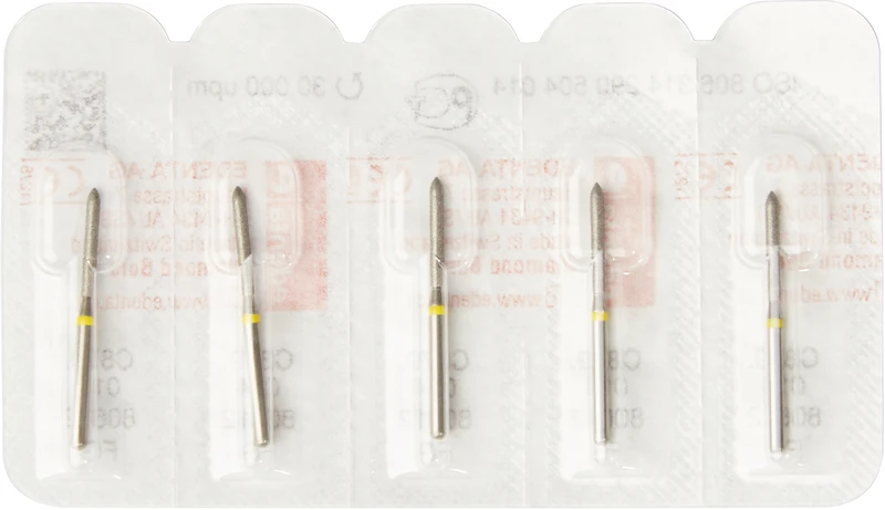 Packung 5 Diamanten gelb superfein, FG, Figur 290 Torpedo zylindrisch, Kopflänge: 10 mm, ISO 014