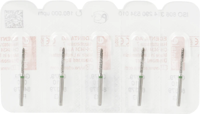 Produktinformationen "Diamanten 879 Packung 5 Stück grün grob, FG, Figur 290 Torpedo zylindrisch, 10 mm, ISO 010"