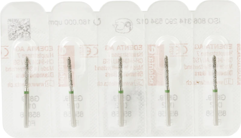 Produktinformationen "Diamanten 879 Packung 5 Stück grün grob, FG, Figur 290 Torpedo zylindrisch, 10 mm, ISO 012"