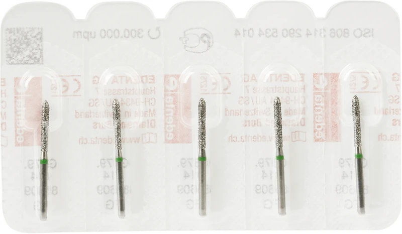 Produktinformationen "Diamanten 879 Packung 5 Stück grün grob, FG, Figur 290 Torpedo zylindrischo, 10 mm, ISO 014"