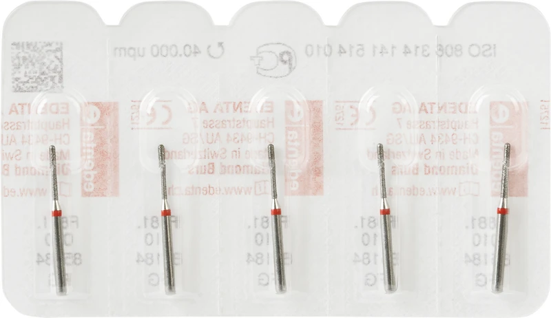 Packung 5 Diamanten rot fein, FG, Figur 141 Zylinder rund, Kopflänge: 6 mm, ISO 010