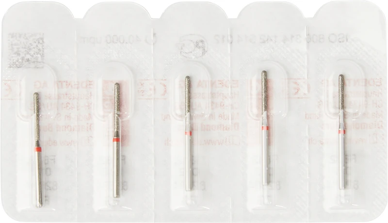 Packung 5 Diamanten rot fein, FG, Figur 142 Zylinder rund, Kopflänge: 10 mm, ISO 012