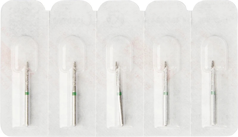 Produktinformationen "Diamanten 888 Packung 5 Stück grün grob, FG, Figur 496 Flamme, 8 mm, ISO 012"