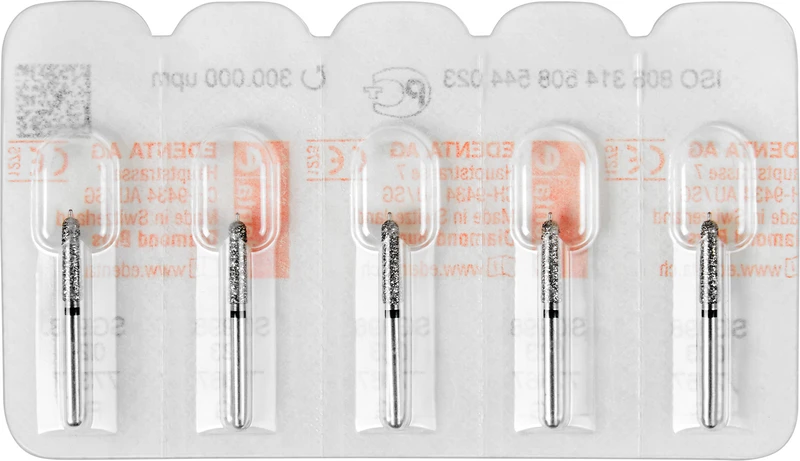 Der Führungsstift dient als Abstandshalter für eine gleichmässige Schnittiefe sowie eine kontrollierte, minimale Reduktion der Zahnsubstanz ohne Überpräparation.