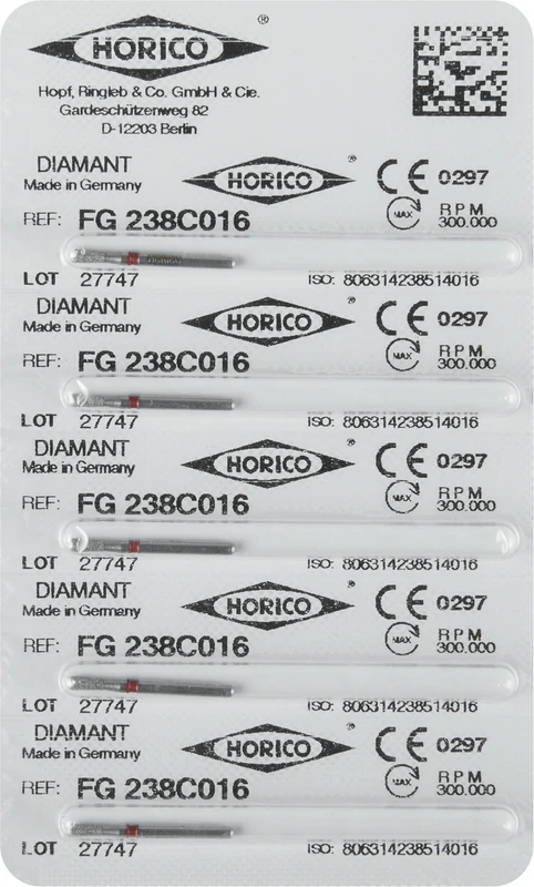 - Figur 238X = Zum einfachen Aufschneiden von alten Füllungen und Kronen, kürzerer Kopf für mehr Sicherheit