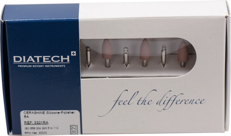 DIATECH Silikonpolierer mit Diamant sind beständig und eher abrasiv, weshalb sie für die Bearbeitung von Materialien mit höherer Endhärte empfohlen werden.