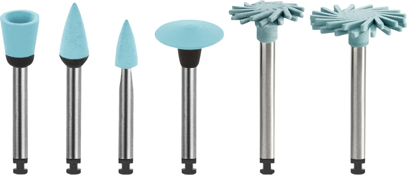 Die weicheren Silikonpolierer sind für die Bearbeitung von Materialien mit geringerer Endhärte geeignet, da sie die Strukturen, die dem Zahn sein natürliches Aussehen verleihen, nicht abtragen.