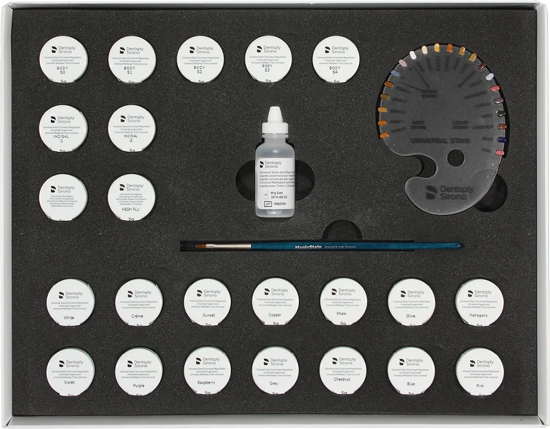 Malfarben und Glasurmassen für die Darstellung der 16 VITA-Classical-Farben für Cercon-, Celtra Press- und Lithiumdisilikatgerüste.