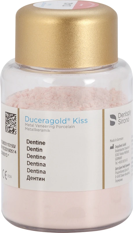 Duceragold®Kiss ist die Verblendkeramik für hochexpansive Legierungen im WAK Bereich von 16,2-17,6 m/m K und Bestandteil des bekannten und seit über 15 Jahren bewährten GoldenGate Systems. Duceragold®Kiss ist gleichermaßen für das Verblenden der Presskeramik Cergo Kiss indiziert. Eine Verblendkeramik mit zweifachem Nutzen. Sowohl das Erscheinungsbild als auch die Materialeigenschaften und die glatte Oberfläche mit einem naturkonformen Abrasionsverhalten entsprechen dem natürlichen Zahn.