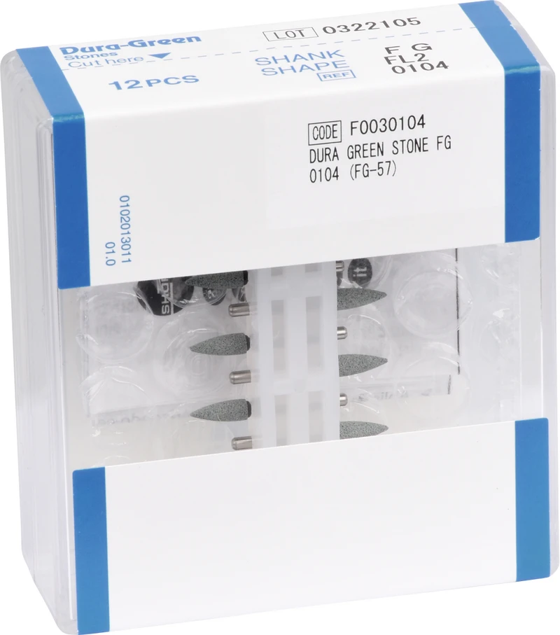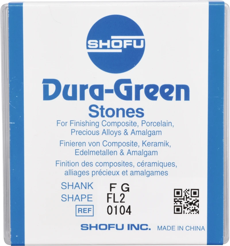 Dura-Green Steine sind aus hochwertigem Siliziumkarbid hergestellt und außergewöhnlich gut geeignet für das schnelle, splitterfreie Konturieren und Finieren von Keramik, Komposit, Edelmetalllegierungen und Amalgam.