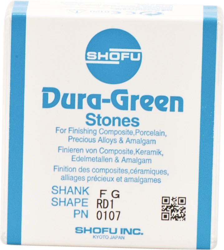 Dura-Green Steine sind aus hochwertigem Siliziumkarbid hergestellt und außergewöhnlich gut geeignet für das schnelle, splitterfreie Konturieren und Finieren von Keramik, Komposit, Edelmetalllegierungen und Amalgam.