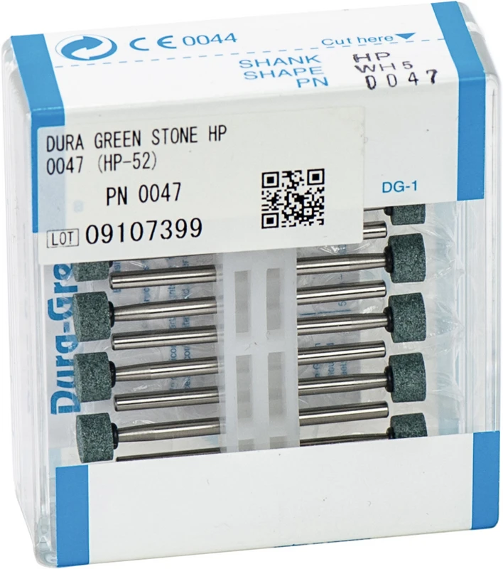 Dura-Green-Steine eignen sich hervorragend zum splitterfreien Ausarbeiten von Keramik, Komposit, Edelmetall und Amalgam. Empfohlene Drehzahl 5.000 - 20.000 U/min., max. Drehzahl 30.000 U/min. / AD 3 - 5 N.