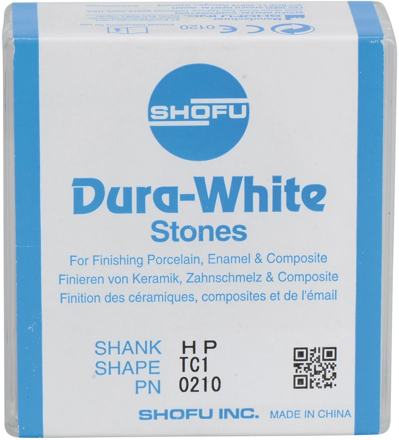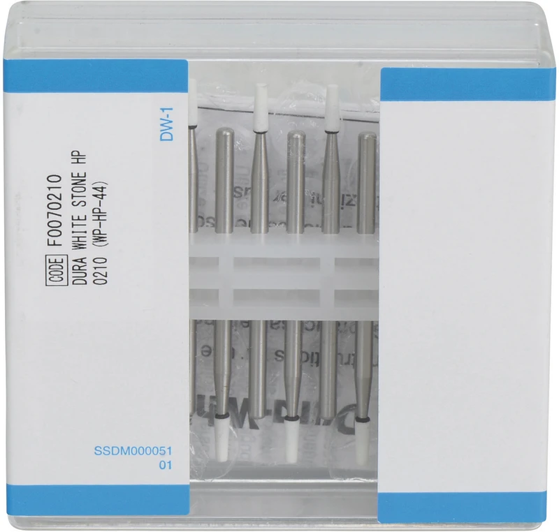 Die mikrogekörnten Dura-White-Steine aus Aluminiumoxid (Arkansas) sind unübertroffen beim Finieren von Zahnschmelz, präparierten Zahnstümpfen, Kompositen, Keramik und Glasionomer-Zementen. Empfohlene Drehzahl 5.000 - 20.000 U/min., max. Drehzahl 30.000 U/min. / AD 2 N.