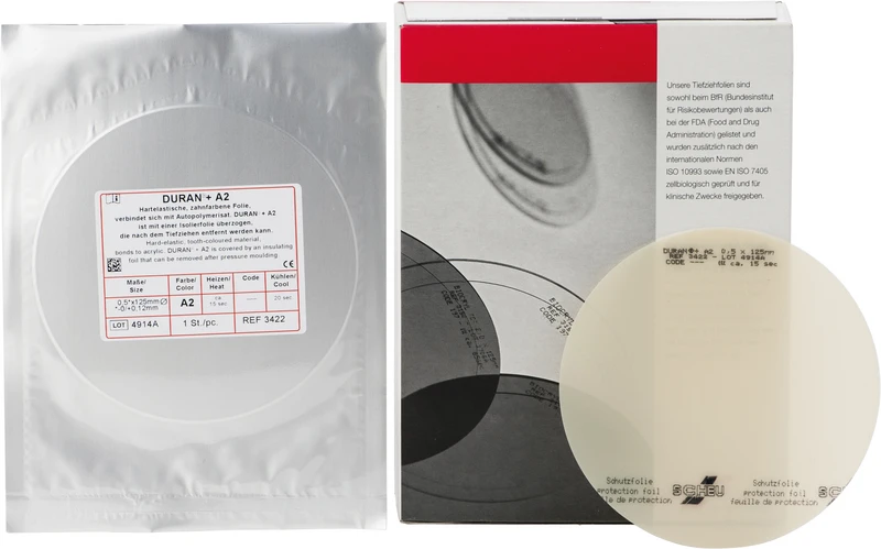 Neue Folie in bewährter DURAN®-Qualität jetzt in ästhetischer VITA A2-Farbe. Keine Vortrocknen notwendig, mit aufgebrachter Isolierfolie. Anwendung