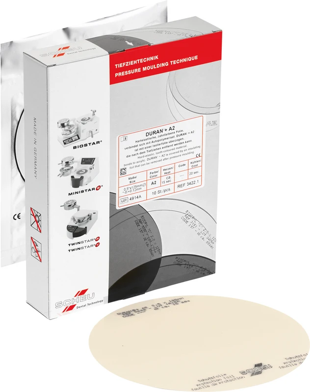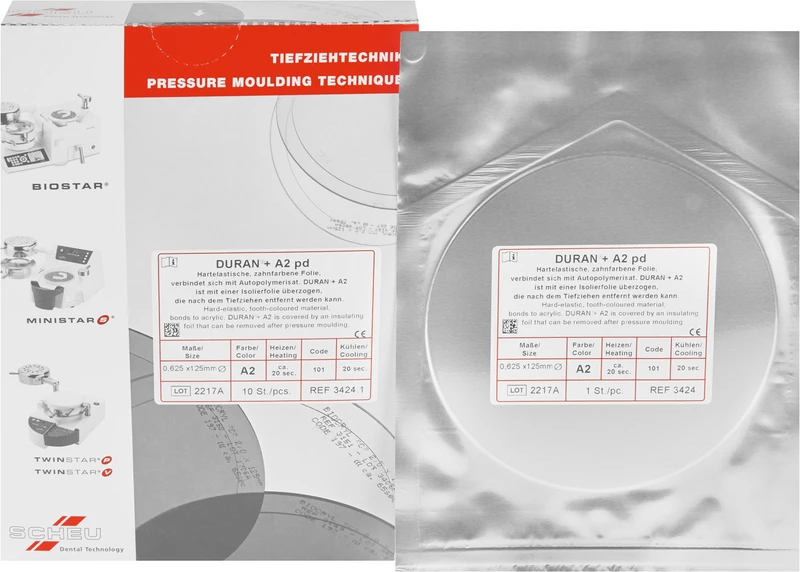 Neue Folie in bewährter DURAN®-Qualität jetzt in ästhetischer VITA A2-Farbe. Keine Vortrocknen notwendig, mit aufgebrachter Isolierfolie. Anwendung